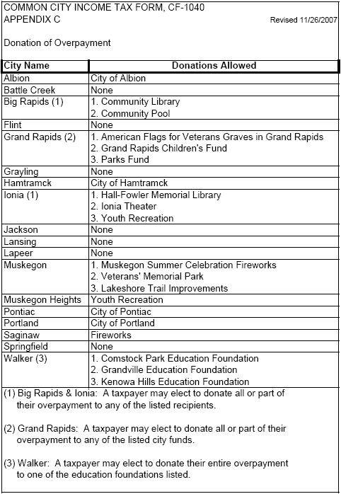 The following cities have Renaissance Zones. The credit is prepared on the Schedule RZ of the CF-1040.
