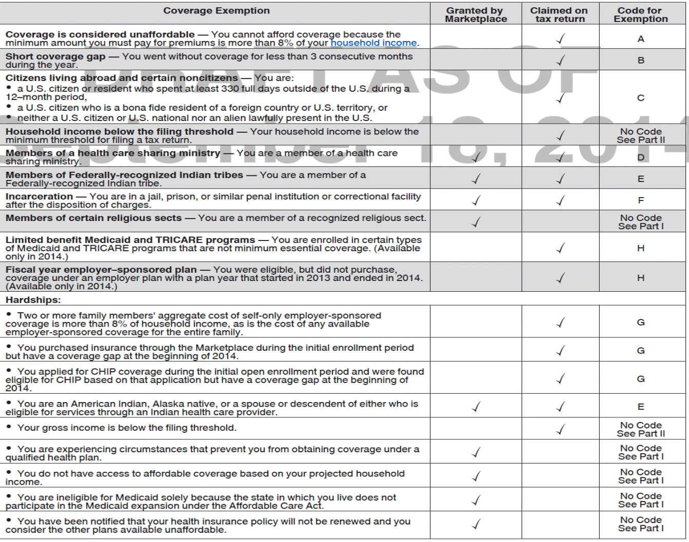 - Your coverage family did not change for any month in 2014 (with the exception of notifying the Marketplace of a change)